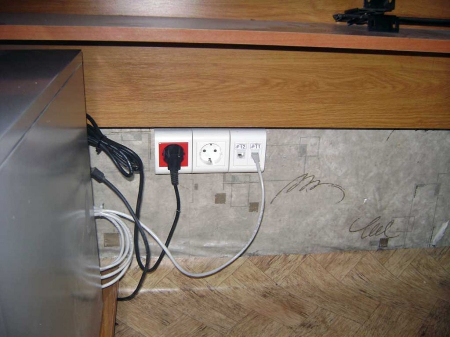 В данном случае, он протянут в розеточный блок для телевизора, состоящий из нескольких электрических, одной ТВ и компьютерной розеток.