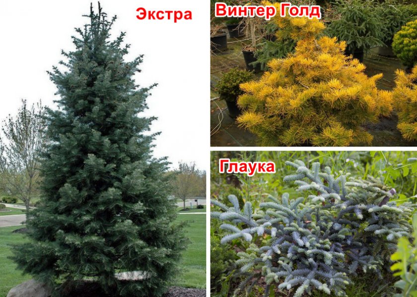 Каждый из них имеет свои определённые особенности. Глаука — высокорослый сорт (высота взрослого дерева около пятнадцати метров) с кроной в виде конуса, толстыми 2-сантиметровыми иголками. Любит влагу и солнечный свет, но боится морозов.