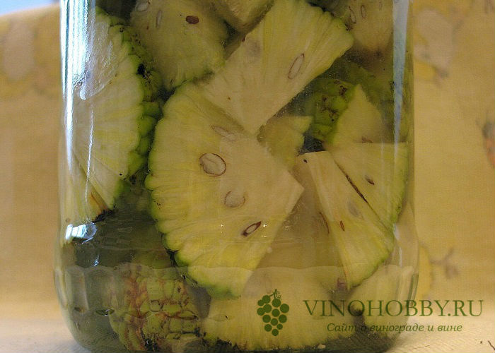 Сам рецепт достаточно прост — взять полкило плодов и мелко нашинковать их, после чего порезанные кусочки переложить в банку и залить их половиной литра качественной водки. Банку закупорить и поставить в темное место. Настаиваться водка должна не менее 30 дней, оптимальный же вариант — пол года. Считается, что со временем она становится только лучше.