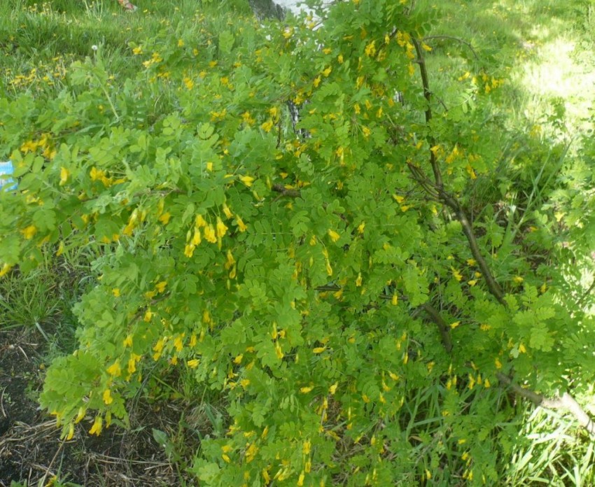 Ускорить рост и развитие желтой акации поможет комплекс весенней минеральной подкормки, которую перед цветением лучше полить раствором органики.