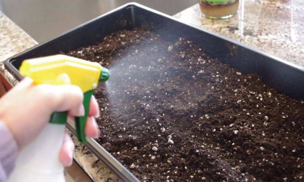 обработать поверхность емкостей для посадки семян раствором марганцовки |