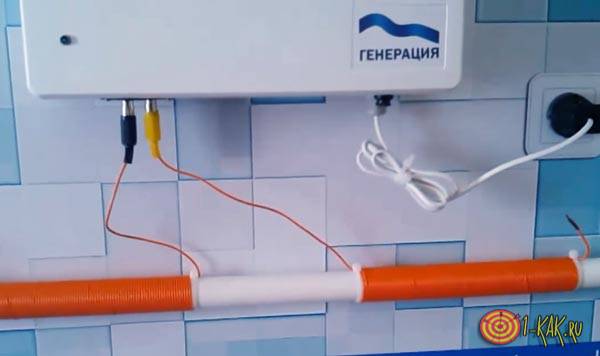 - Электромагнитное излучение передается по проводам, соединенным с трубой, по которой течет обычная водопроводная вода.