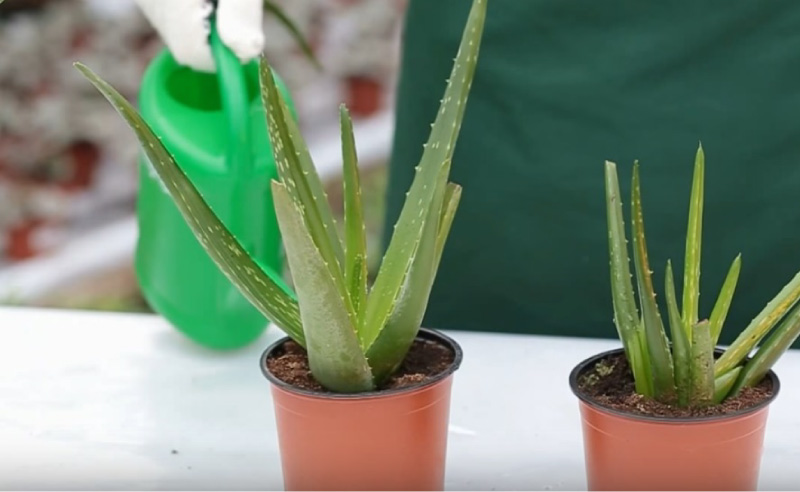 Так как и столетник, и алоэ относятся к растениям, имеющим специальный слой для запаса воды (общее название – суккуленты), они не требуют частого полива. В зимний период достаточно вносить влагу 1-2 раза в месяц. В летний период растения требуют полива с периодичностью 1-2 раза в неделю.