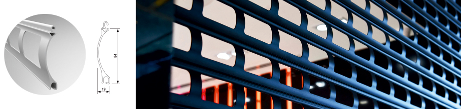 Решеточный профиль AEG84 – классический профиль с большими окнами обеспечивает высокий уровень проникновения воздуха и света внутрь помещения.