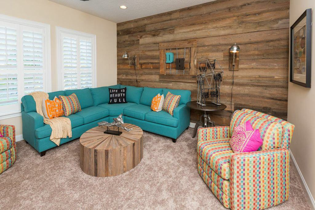 Гостиная — состаренные доски могут украшать стену этой комнаты, потрескавшаяся краска будет эффектно сочетаться с современной мебелью, перекликаться с отдельными элементами декора. Красиво будет смотреться пол из старых досок, украшенный персидским ковром, чей пышный дизайн будет выгодно контрастировать с вытертыми половицами. Стену гостиной всегда можно украсить большим зеркалом в необработанной оправе из старых досок.