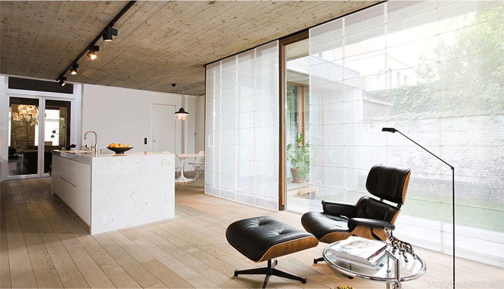 Лучше всего экранные шторы смотрятся в просторных помещениях на больших окнах. Если же комната и окна маленькие, то такие занавески будут выглядеть неуместно и громоздко. Однако правильно подобранные длина и ткань могут решить эту проблему.