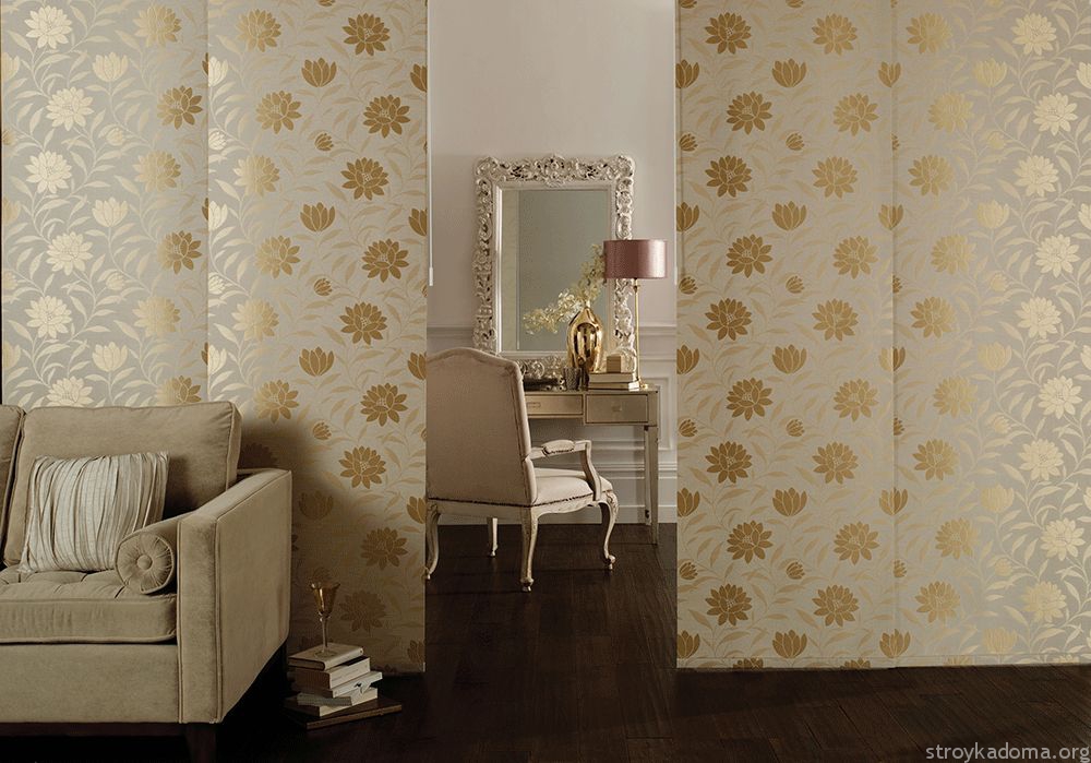 Важно, при расчете обратить внимание, чтобы рисунок не уходил за границы панелей. Структура и плотность ткани (от самых легких прозрачных и заканчивая жесткими плотными) подбирается от особенностей обстановки в комнате и могут быть изготовлены из разных, но в большей степени натуральных материалов: