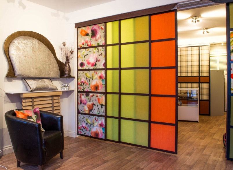 Японские панели прекрасно подойдут не только для жилых помещений, но и для офисов, магазинов или салонов. В этом случае стоит использовать качественную и дорогую ткань чтобы добавить изысканности и благородства интерьеру. Чтобы подчеркнуть статус и стиль компании можно нанести рисунок или логотип фирмы на тканевые панели.