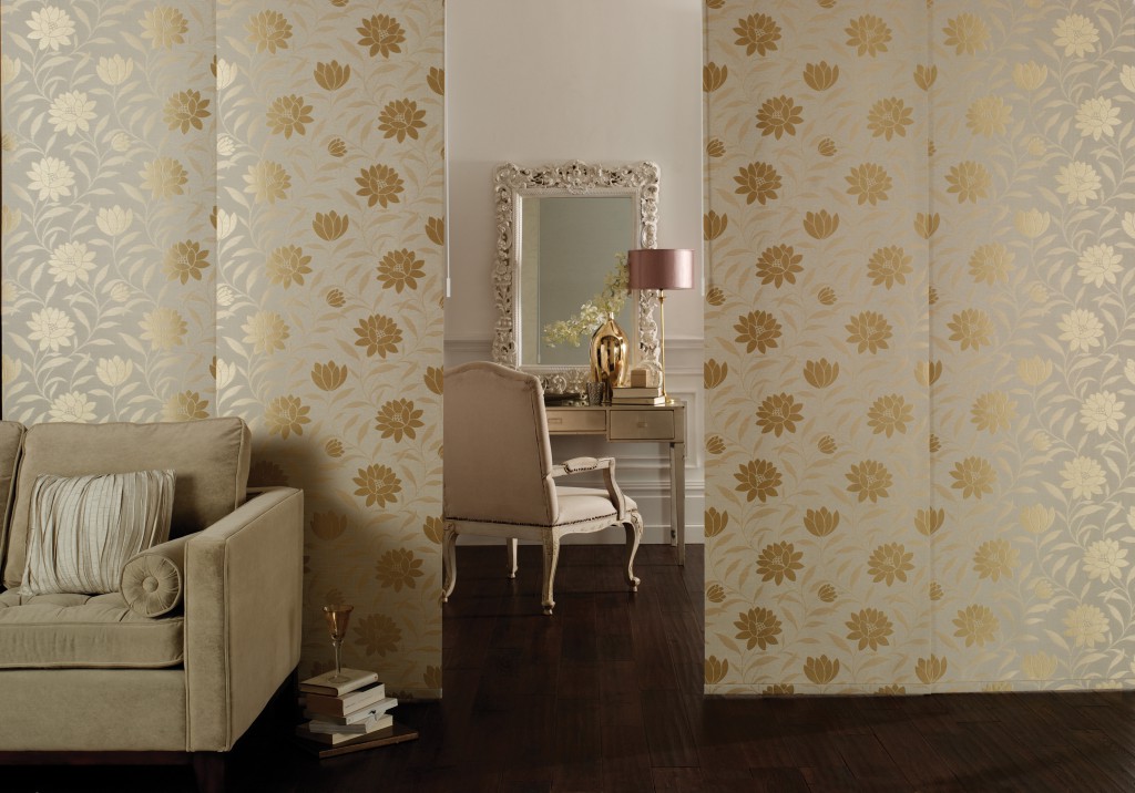 Помимо отсутствия традиционных для штор складок, японские шторы отличаются также возможностью использовать их в качестве идеального элемента зонирования: панели могут отделить зону гостиной от кухни, выделить рабочий уголок в спальне. При этом такой способ выделения функциональных зон является максимально простым, а комнаты с легкостью превращаются в одно помещение движением панели в сторону.