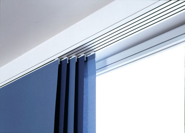 Панели из ткани на окна крепятся особым образом. Карниз, который присоединяется к потолку или стене, имеет несколько дорожек.