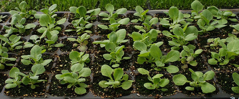 2. Выращивание рассады. Первые всходы появляются через 3-4 недели. После этого тепличку убирают, уменьшают количество и объем поливов, а сам контейнер с рассадой переносят в место посветлее. Уход за рассадой простой — своевременное увлажнение и рыхление почвы.