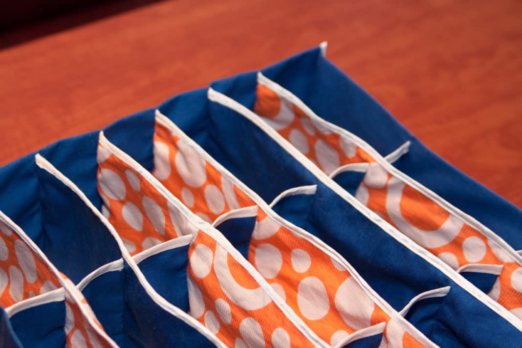 - Тканевый органайзер. Тканевый органайзер хороший вариант для квартиры. Сюда легко вместится базовый набор рожковых ключей, отверток, пассатижи и молоток. Сам органайзер представляет собой отрез ткани с кармашками, который сворачивается после работы и убирается в шкаф. Помимо малого количества отделений, недостатком такого органайзера является малый срок эксплуатации. Ткань быстро загрязняется и начинает рваться. Даже покупные изделия не отличаются долгим сроком службы, самодельные приспособления, как правило, «живут» еще меньше.