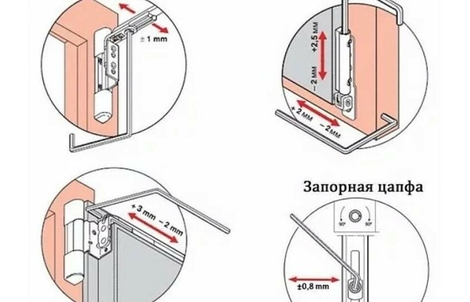 Схематическая инструкция для самостоятельного регулирования положения балконной двери