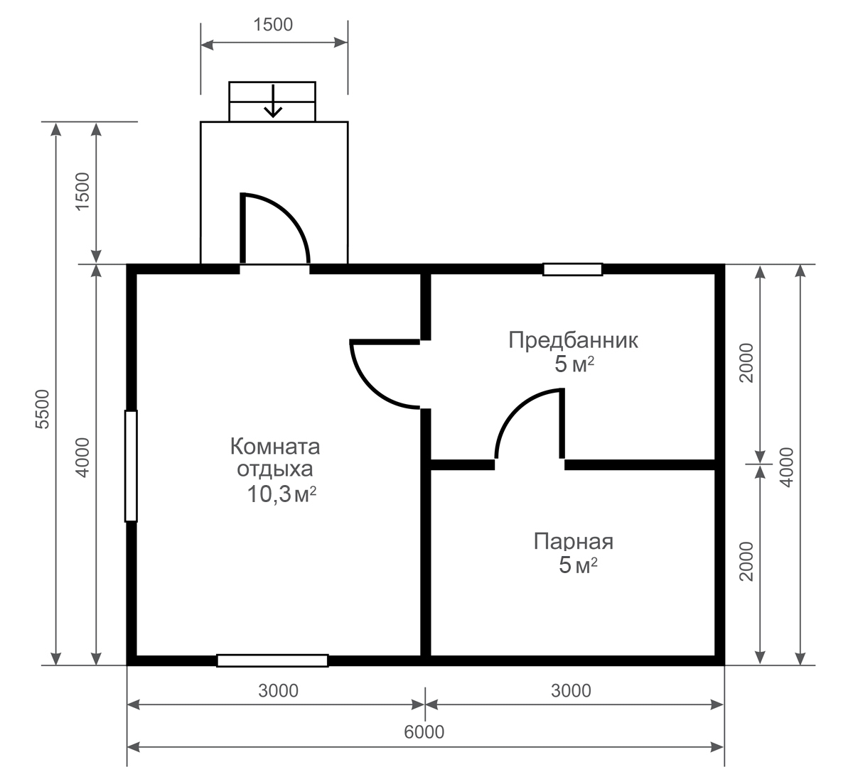 Составляя внутренний план бани 6 на 6, нужно учесть: