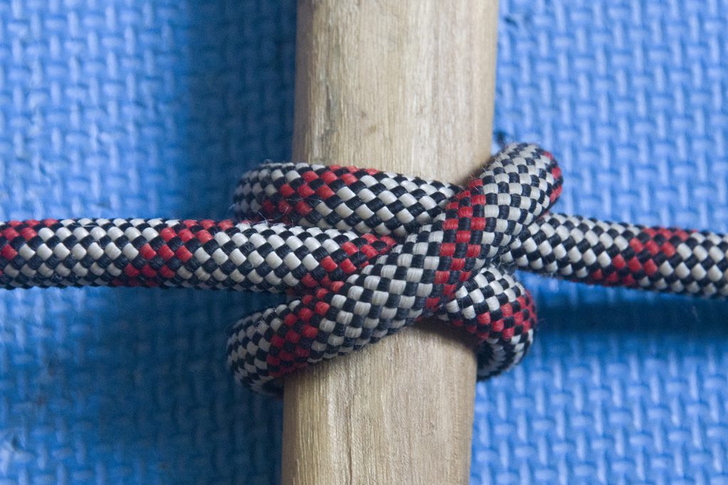 Можно одним из концов верёвки сделать ещё один оборот вокруг опоры, тогда узел будет крепче держать.