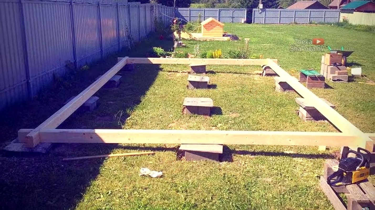 Важно только, чтобы брус был пропитан отработкой и битумом. В качестве фундамента бани подойдут старые столбики