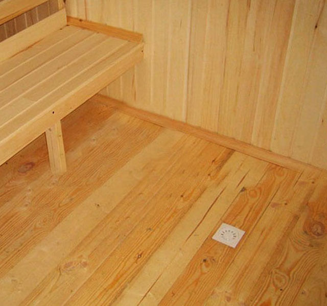 Как гласит инструкция, пол в парной должен быть выполнен под небольшим уклоном к водостоку, выполненному в противоположной стене от каменки. Водосток должен быть гидроизолирован от всех конструкций в здании.