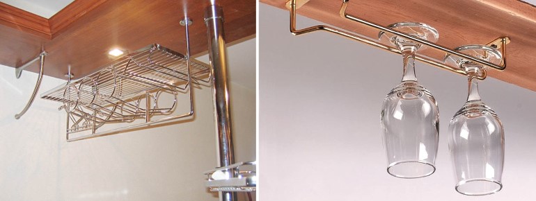 Подвесная система для хранения бокалов, бутылок и стаканов, которая крепится не на барную стойку, а к потолку. Благодаря такой конструкции кухни, фото которых можно посмотреть на сайте, выглядят особенно стильно и современно.