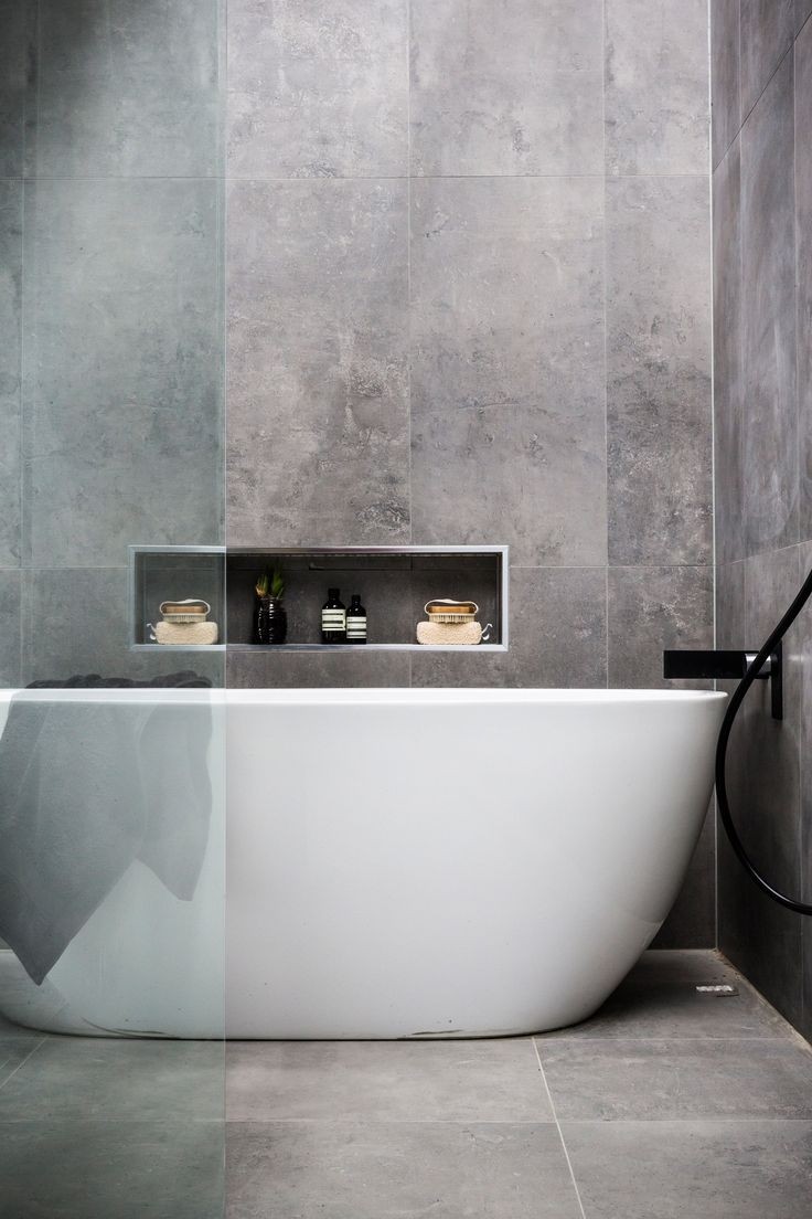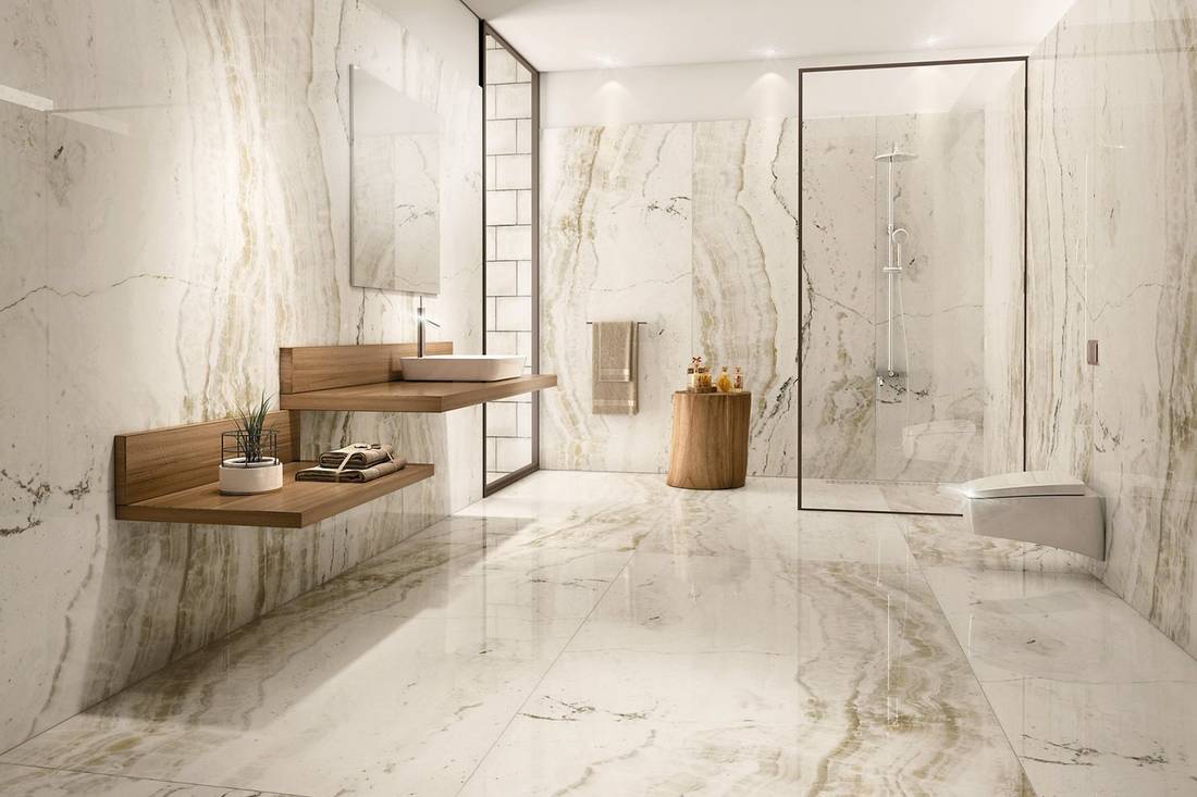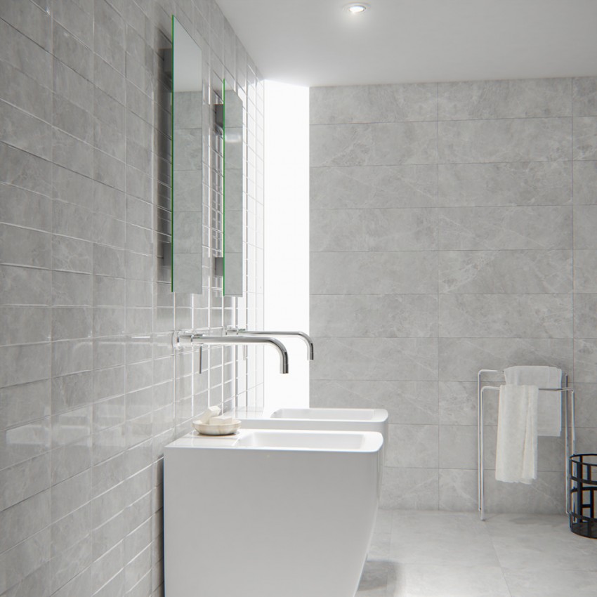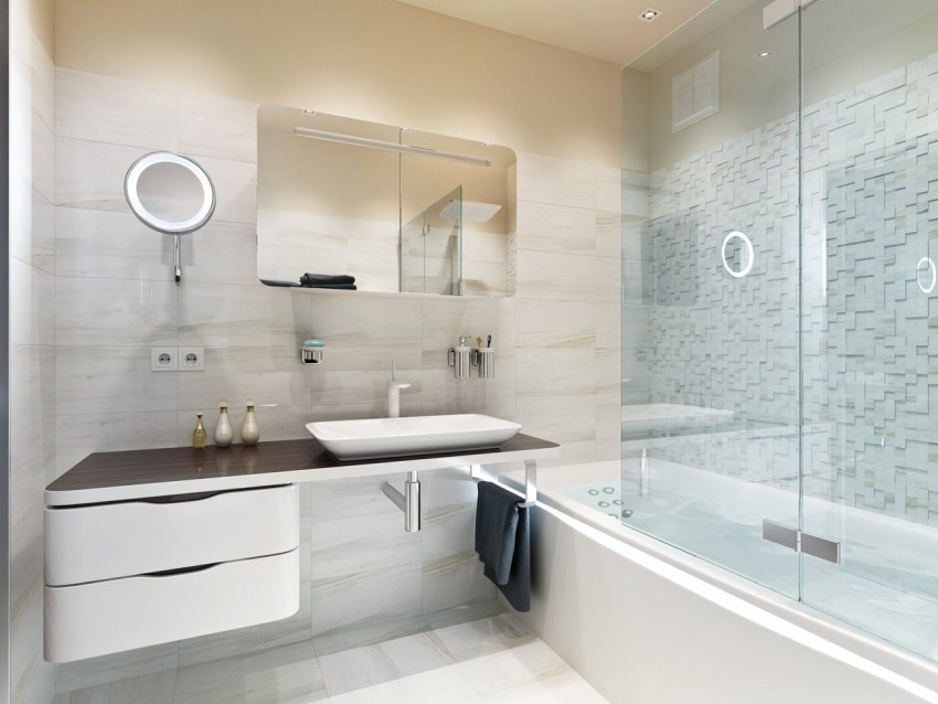 Дизайн ванной комнаты в современном стиле с рассеивающим мягким светом
