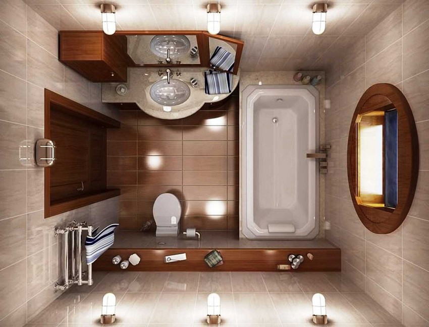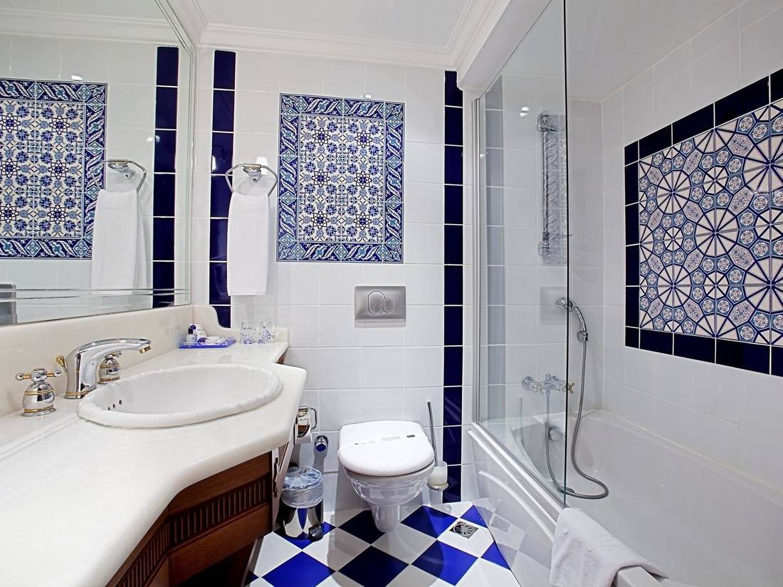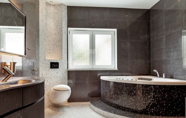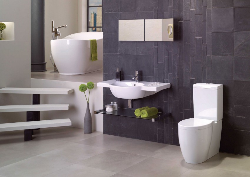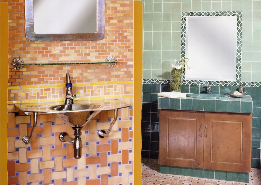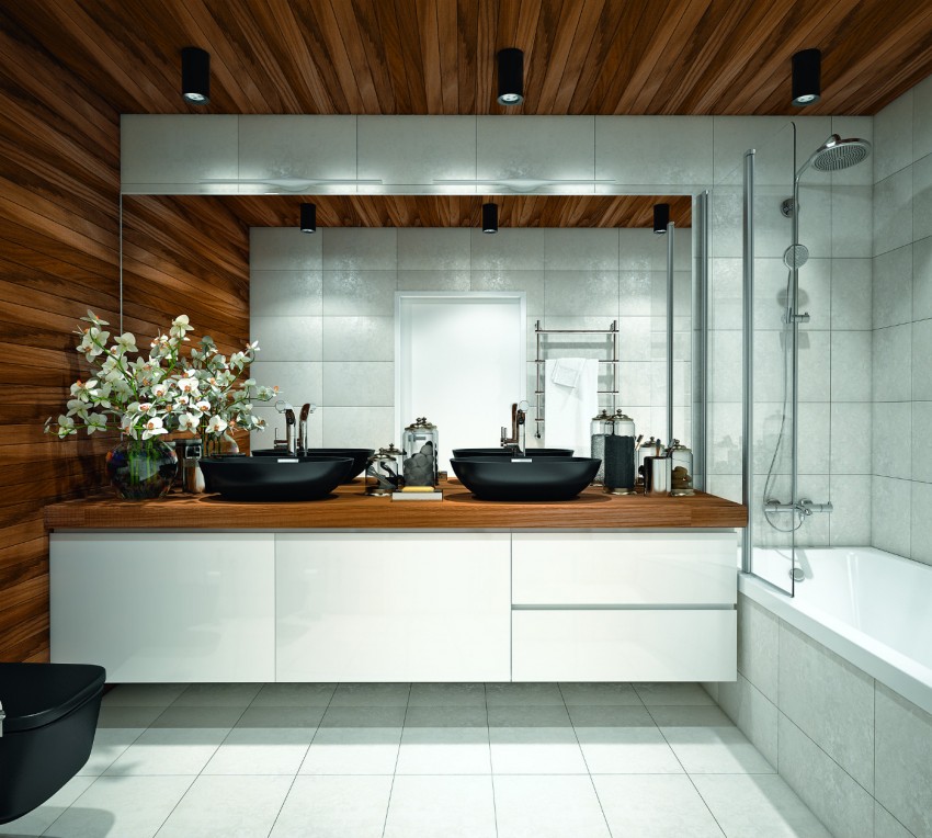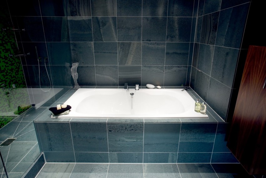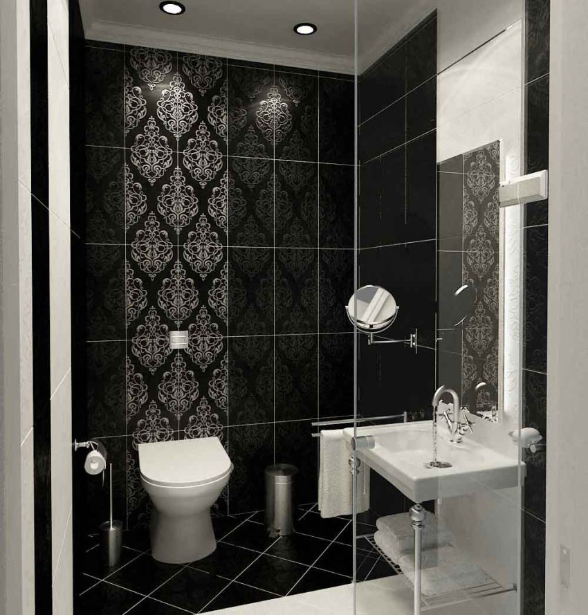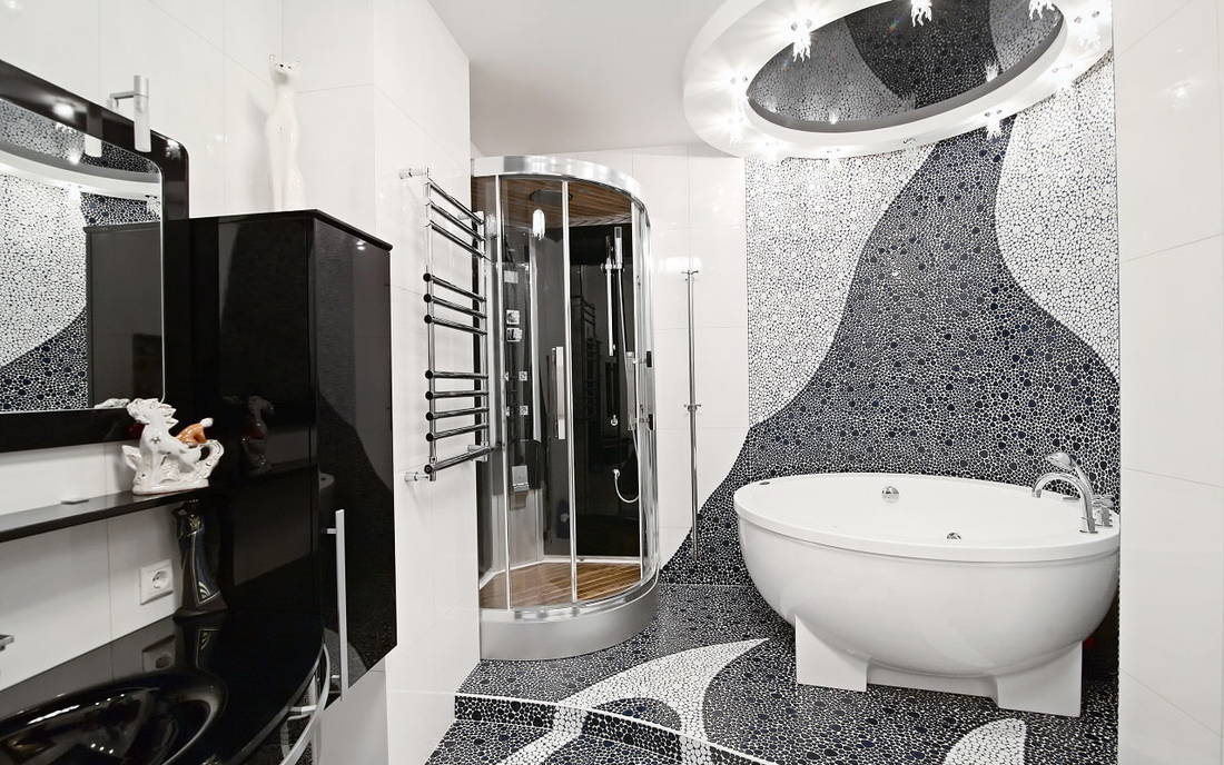 Если простая отделка, когда на стенах и полах присутствует одинаковая однотонная плитка и различие состоит лишь в разности оттенков горизонтальной и вертикальных конструкций, не является пределом желаний, приходится передумать массу способов оформления. Постараться подстроиться под определённый стиль, согласовать расположение основного оборудования, форму предметов мебели.