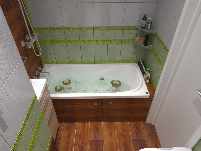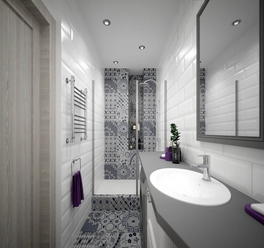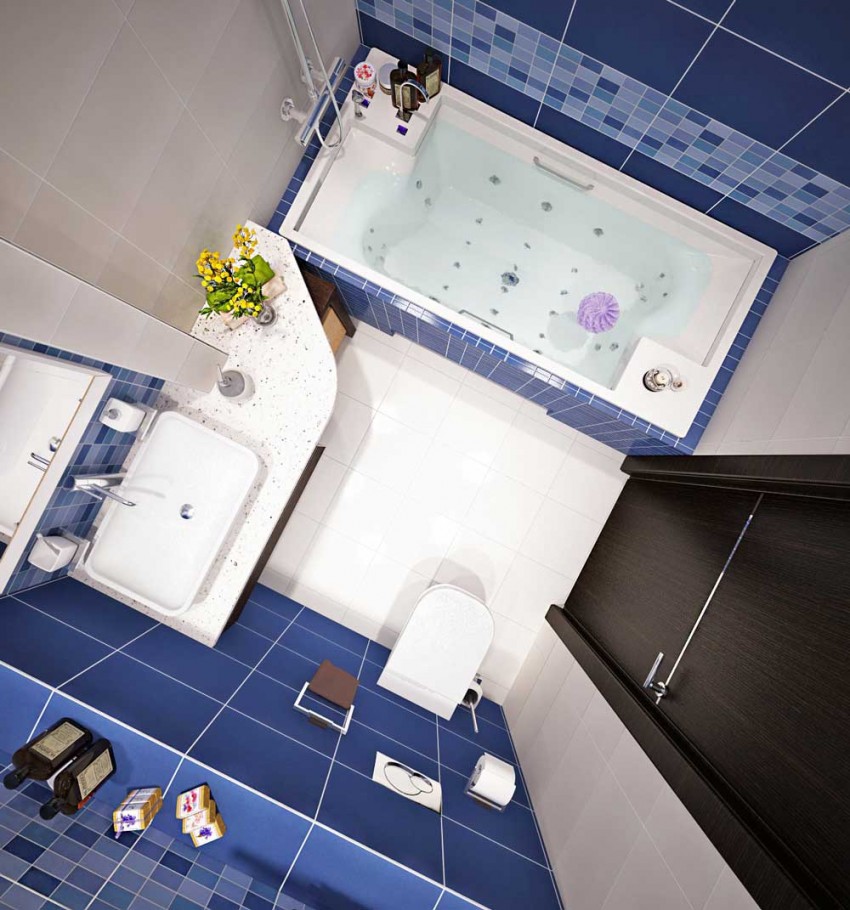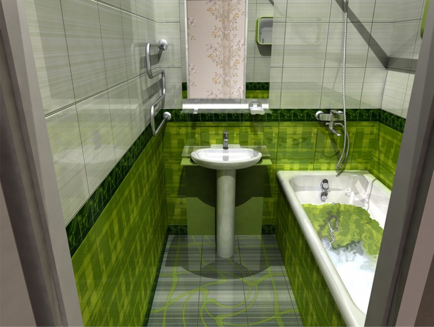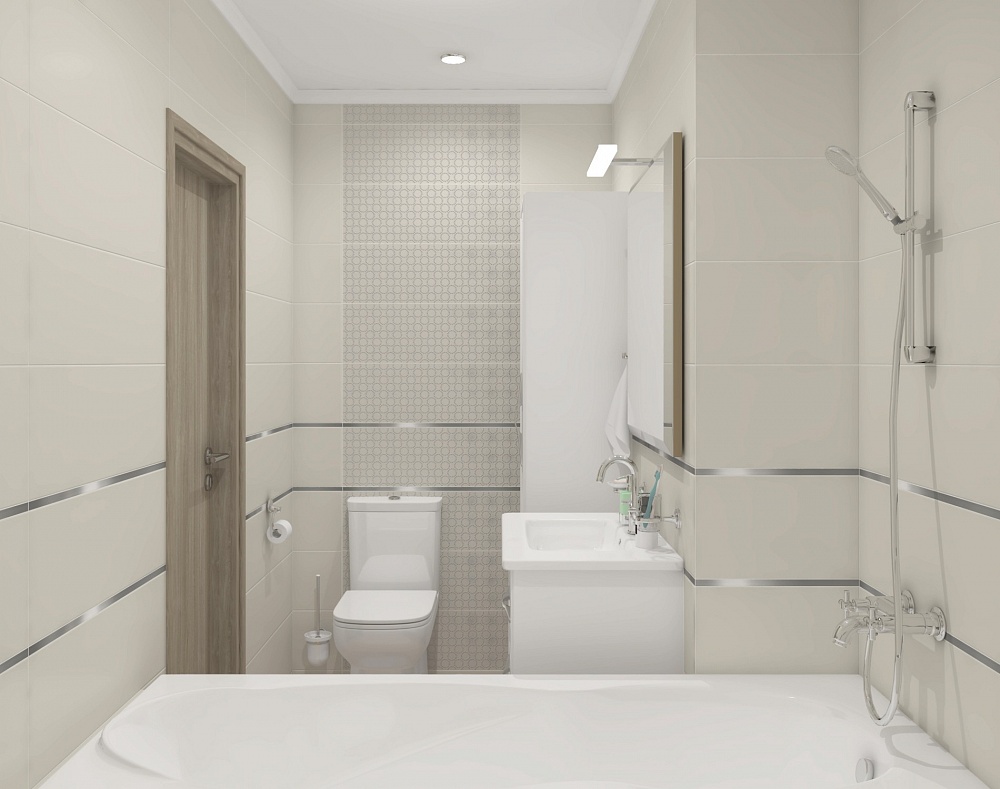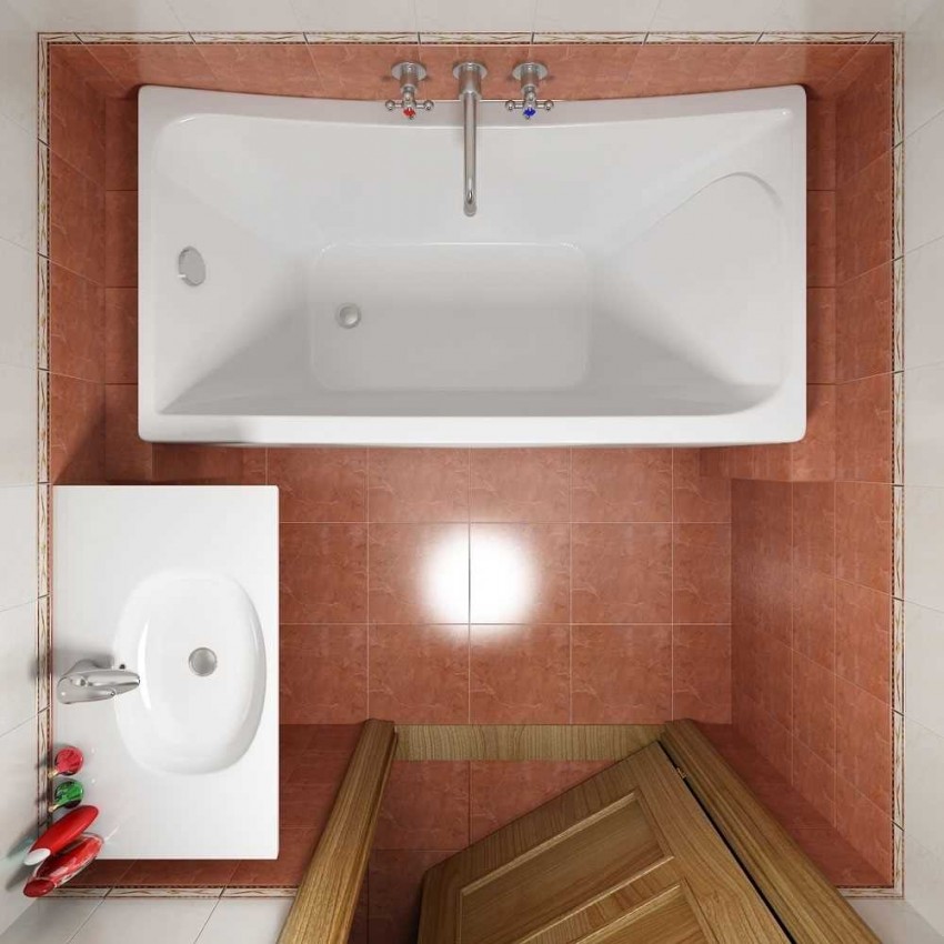 Если у вас маленькая ванная комната, стоит задуматься, сможет ли данная раскладка плитки в маленькой ванной визуально расширить помещение и увеличить высоту стен.