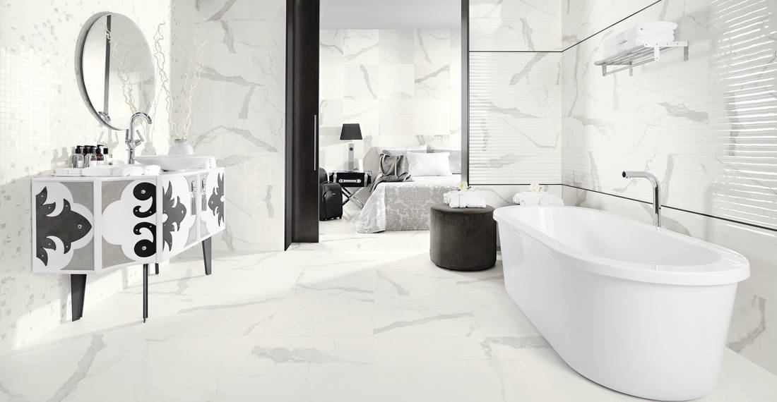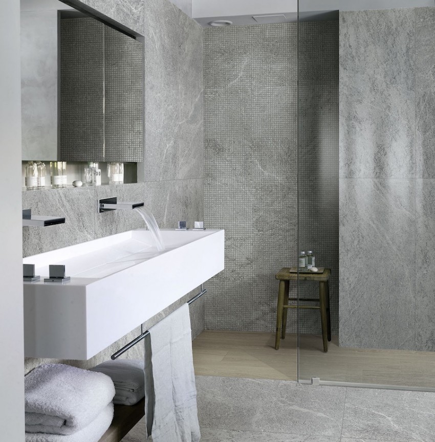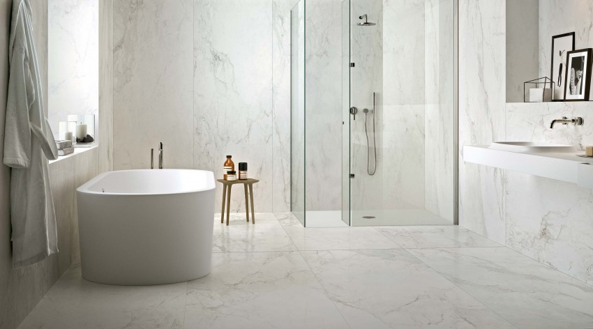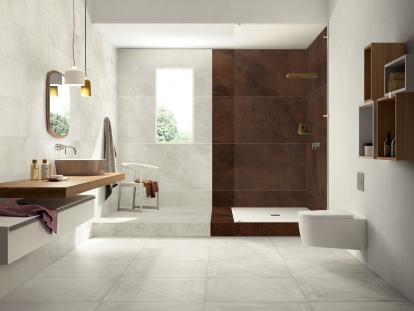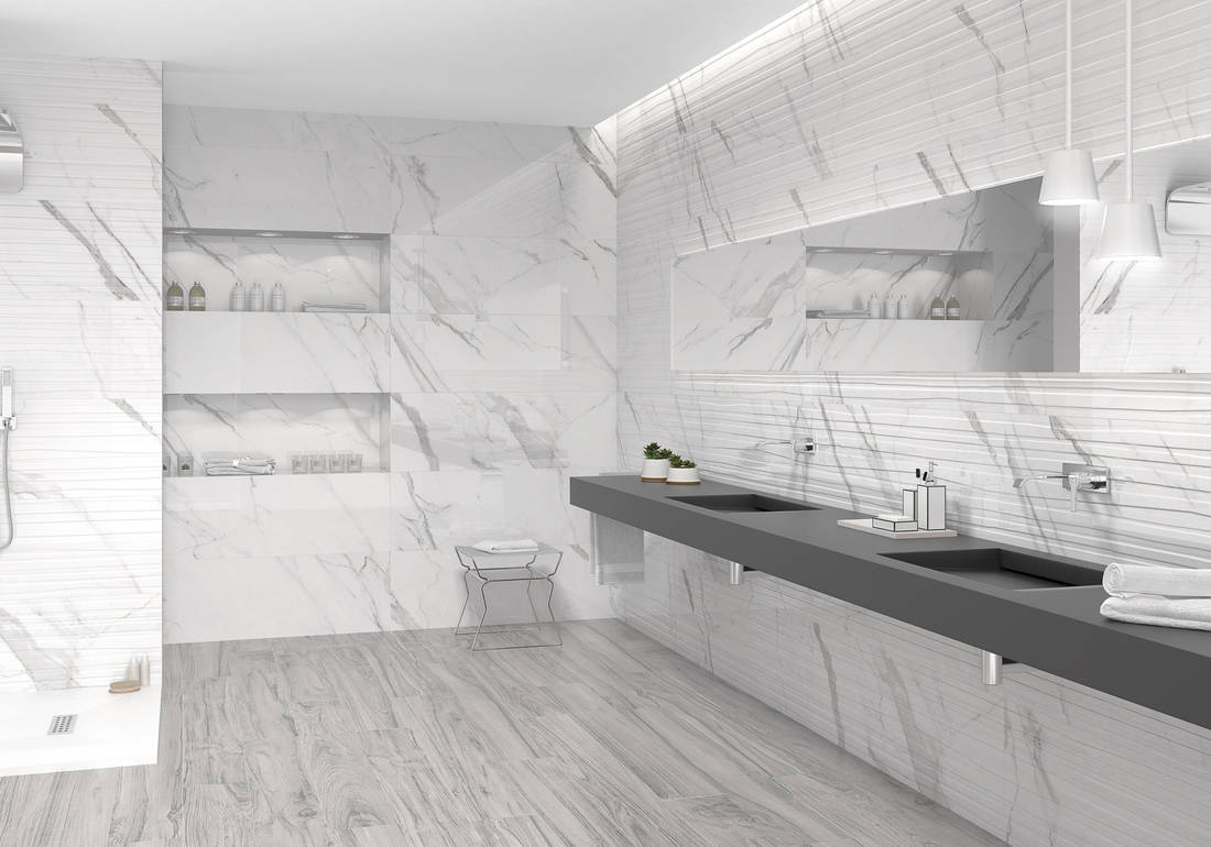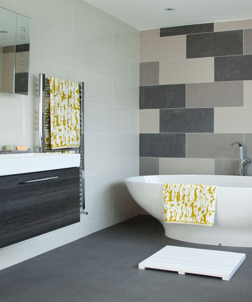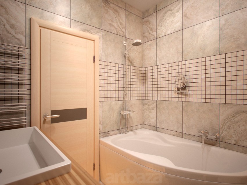 В просторной комнате есть возможность использовать влагостойкие отделочные материалы, которые можно комбинировать. Среди них: