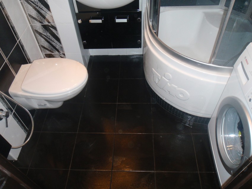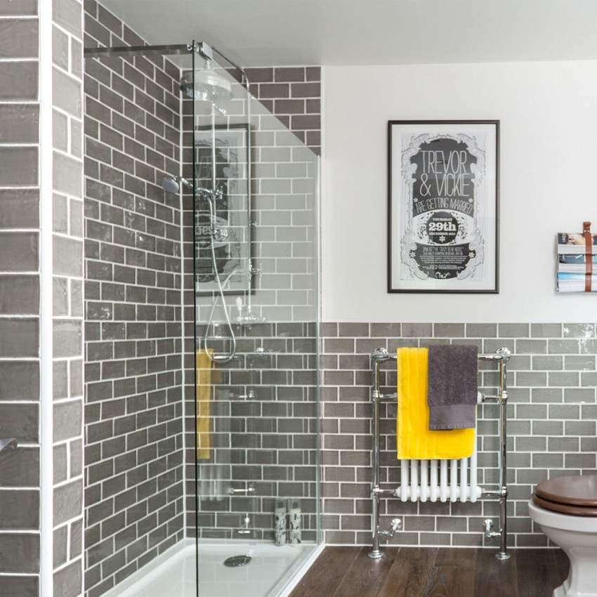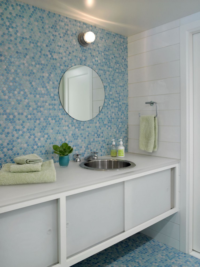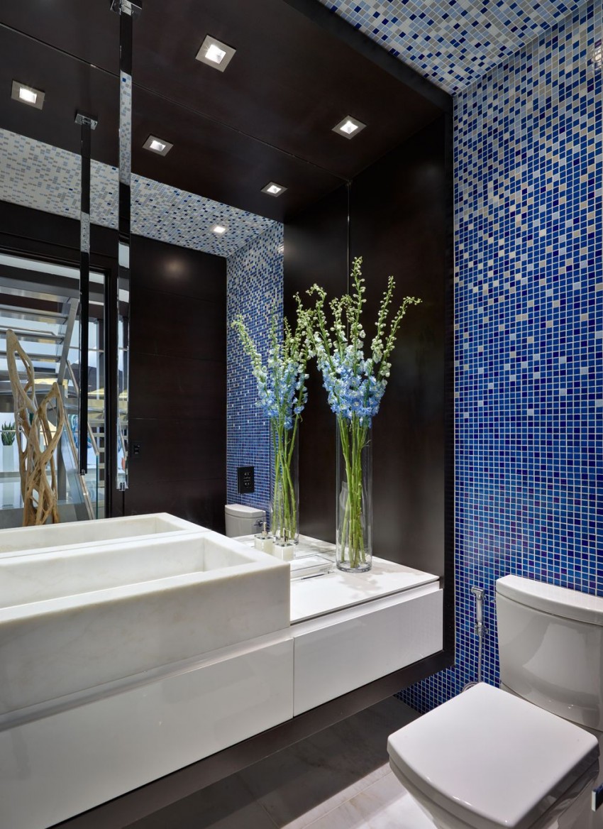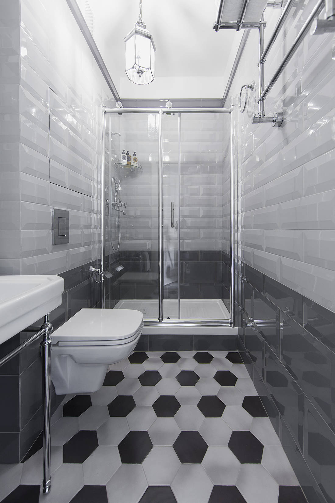 Выделение яркой полосой унитаза, раковины или стиральной машины преображает помещение.