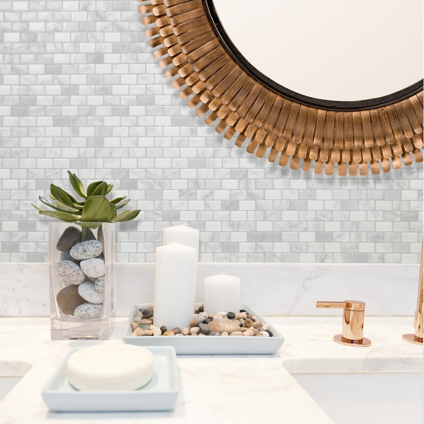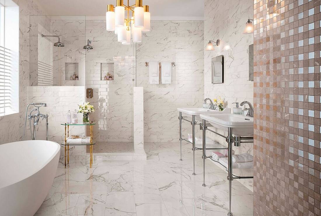 Благодаря небольшим элементам плитки можно облицевать сложные поверхности. Мозаика обладает такими свойствами: · влагостойкость; · долговечность; · экологичность. Преображает и увеличивает пространство в ванной комнате. |