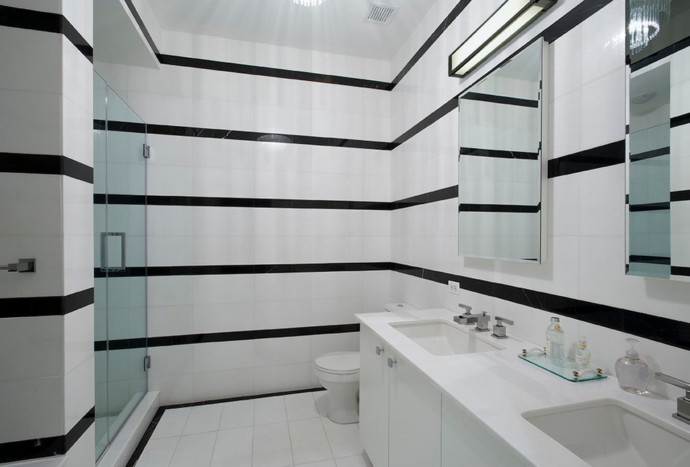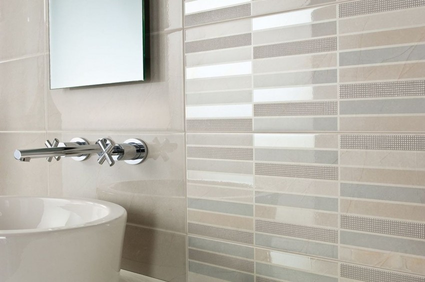 Сочетание горизонтальных и вертикальных полос. Весьма актуально и сочетание плитки в ванной.