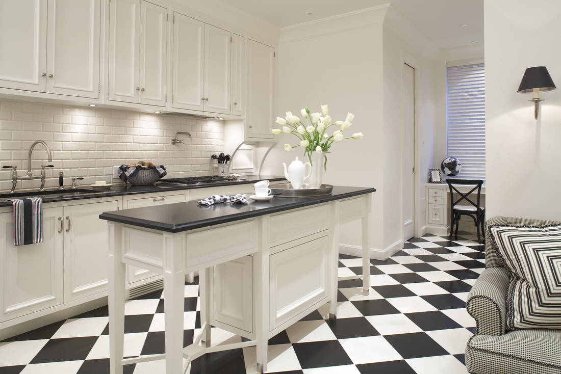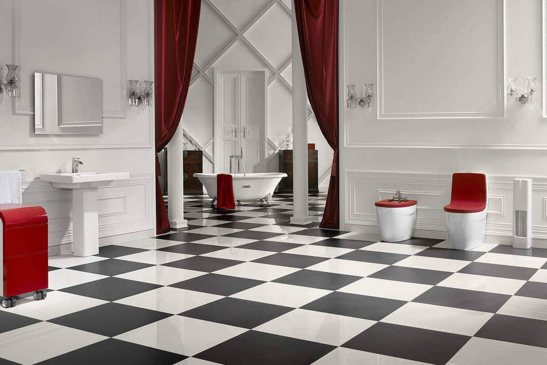 Укладка плитки шахматным узором. Это классический вариант оформления помещений с использованием плитки двух цветов. Лучше всего шахматный рисунок будет смотреться в квадратных помещениях.