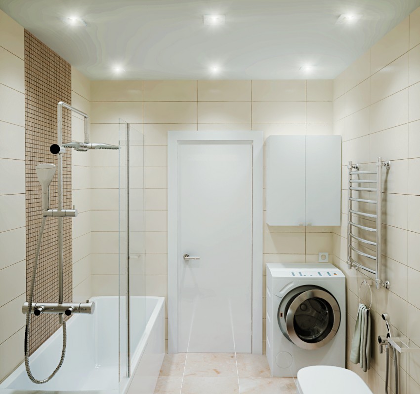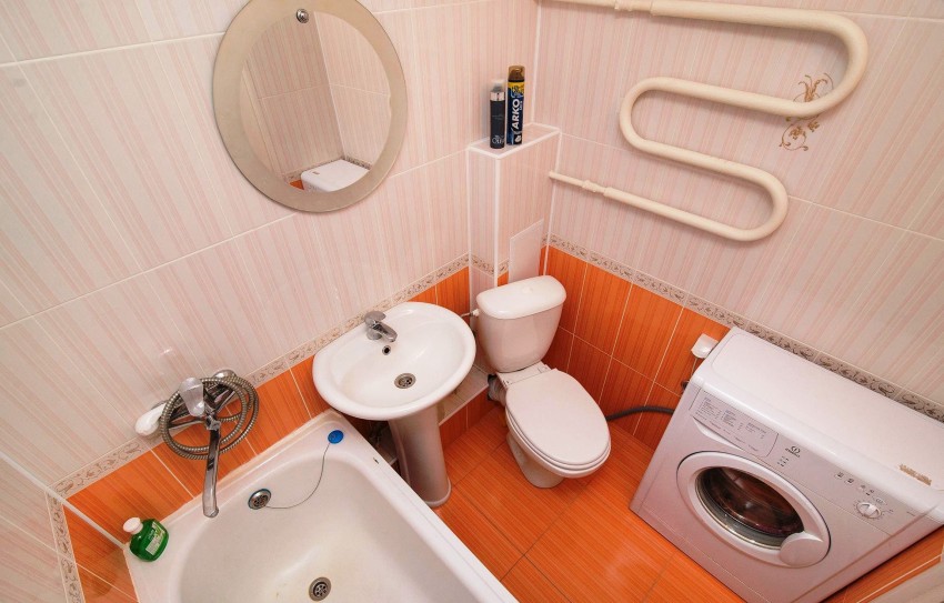 Для экономии места, стиральную машину можно разместить под раковиной или рядом с ней