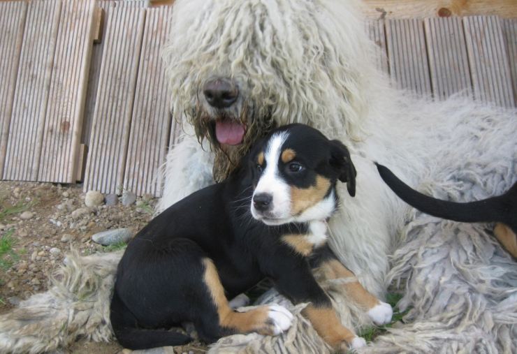 С другими домашними животными швейцарец быстро устанавливает контакт и считает всю мелочь членами собственной стаи, за которой нужен глаз да глаз.