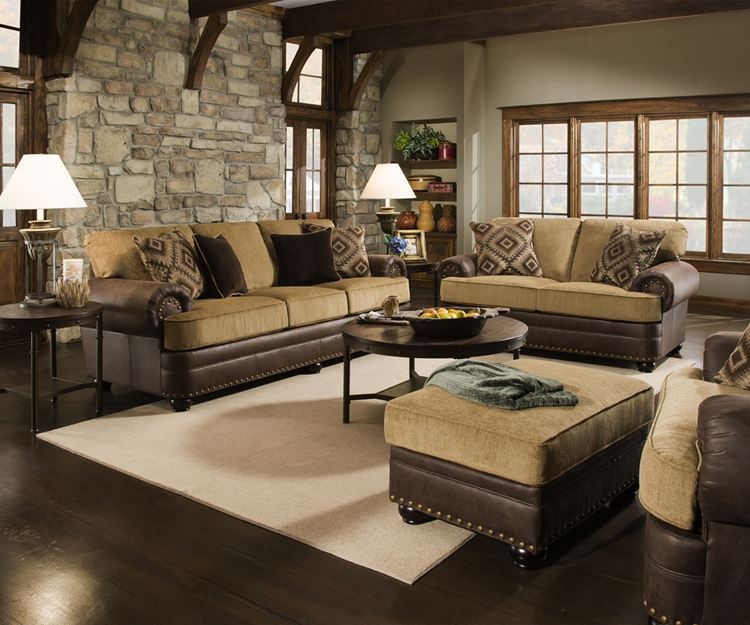 Шале – это теплота, уют с некоторой первобытностью за счёт использования в дизайне интерьера большого количества дерева, иногда нарочито необработанного, грубого. В стиль шале больше вписываются кожаные коричнево-бежевые диваны более насыщенных глубоких оттенков. К нему близок рустикальный или деревенский стиль с акцентом на природные материалы и имитацией атмосферы деревенского домика.