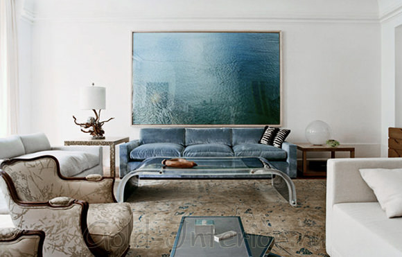 Сочетая в себе расслабленность и отсутствие всяких раздражающих элементов, этот приятный и нейтральный стиль хорошо принимает диваны в оттенках светло-бежевого, особенно с лёгким желтоватым подтоном или классическую слоновую кость.