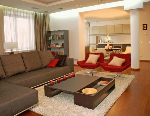 Что касается меблировки, то выбирать следует предметы, имеющие геометрическую конфигурацию – избегайте скругленных углов. Текстиль используйте в минимальном количестве – достаточно коврового покрытия на полу и диванных подушек.