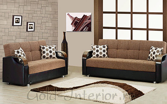 Бежево-коричневые диваны из кожи и текстиля
