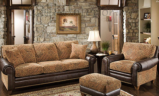 Диван с кожаными подлокотниками и гобеленовыми подушками очень самобытен. В обрамлении стен из камня, например, в загородном доме, может напоминать средневековые картины. В классическом интерьере напомнит о великолепии дворцов. Среди ковров, шелка и блеска создаст восточное настроение.