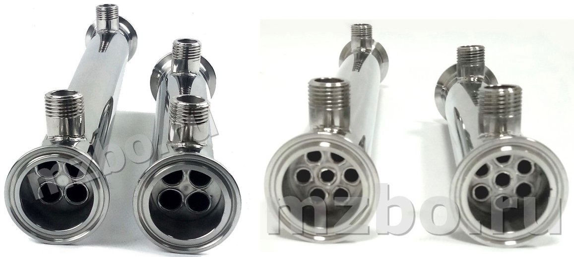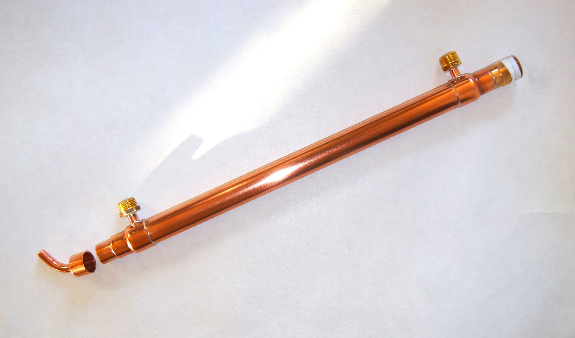 Для колонн в 2” предлагаются холодильники длиной 35 см с 5 перегородками и 50 см с 7 перегородками имеют по 7 паровых трубок с внешним диаметром в 12 мм способны утилизировать до 4,5 и 6 кВт соответственно. Дефлегматоры длиной в 20 и 25 см и 3 перегородками обеспечивают стабильную работу колонн благодаря 7 паровым трубкам с внутренним диаметром в 10 мм.