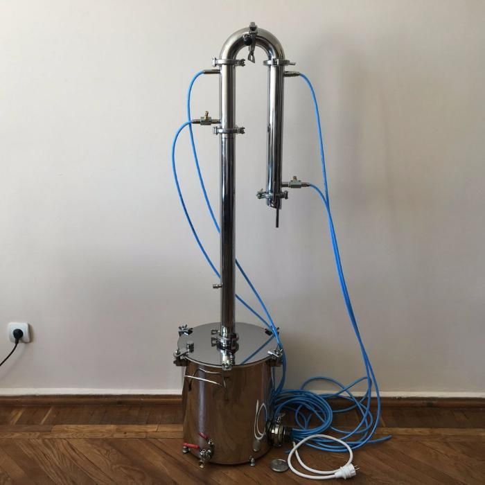 Бражная колонна – это усовершенствованный самогонный аппарат, с холодильником и дефлегматором. Дистиллятор позволяет получить качественные напитки в домашних условиях, с высокой крепостью.