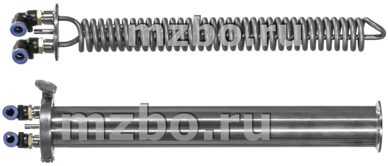 Это мощный холодильник высотой 35 см, избавленный от вероятности завоздушивания и обеспечивающий высокую точность управления колонной. Крепление к царге с помощью клампового соединения делает его универсальным и легким в обслуживании. Холодильник способен утилизировать до 3,5-4 кВт полезной мощности.