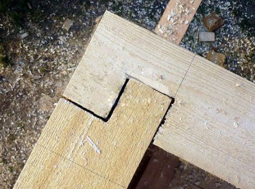 Распространенным методом углового соединения является «ласточкин хвост». От коренного шипа он отличается трапециевидной формой, которая делает зону контакта брусьев более плотной и жесткой.