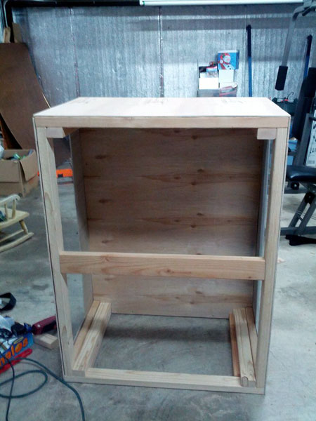 - Заднюю стенку, верх и боковые части оббейте фанерой, вырезанной по соответствующим параметрам.