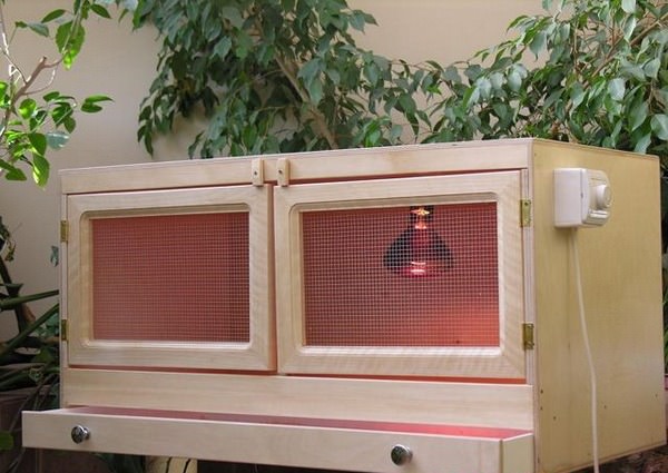 - короб для птенцов с дверцами для доступа внутрь брудера;