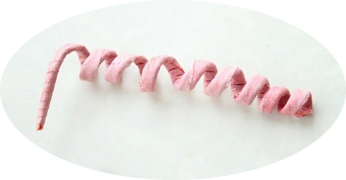 - Выньте спицу. Так как мы начинали скручивать полоску со стороны текста, трубочка получилась белой.