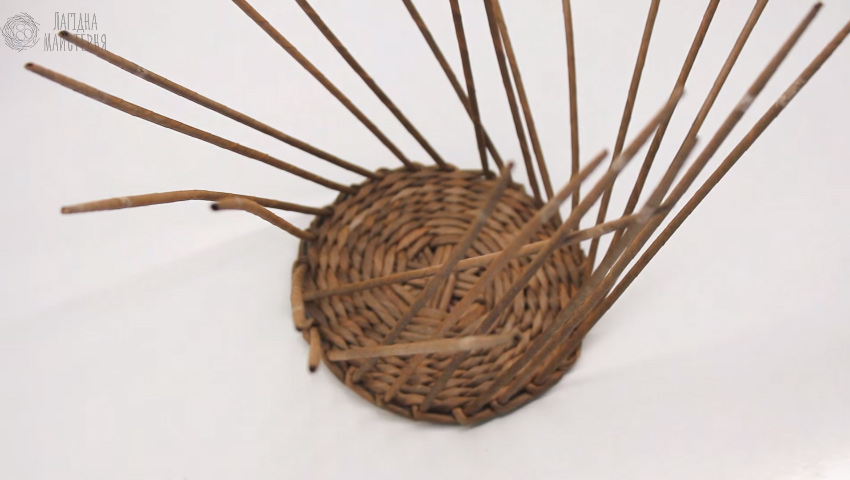 Самый легкий способ для новичка ‒ просто поднять руками стойки вверх примерно на 30 градусов и продолжить оплетать их веревочкой. После первого круга стойки нужно приподнять еще на 30 градусов и дальше плести веревочкой.