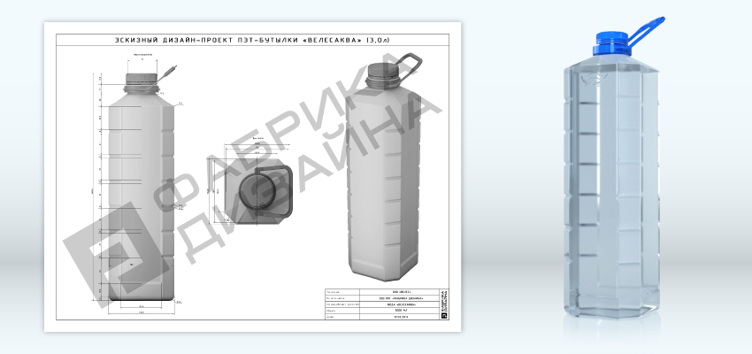 Для ПЭТ бутылки чертеж играет также важнейшую роль в реализации дизайнерской концепции. При проектировании дизайна ПЭТ бутылки ключевым моментом является состояние будущего напитка – с газацией или без (тихий напиток или вода). Это обязательно учитывают специалисты «Фабрики Дизайна» при создании эскизов дизайна пэт бутылок или проектируя чертеж пластиковой бутылки. При этом возможности реализации новаторских дизайнерских идей при работе с негазированными напитками практически неограниченны, что наглядно видно в оригинальных образцах ПЭТ тары.