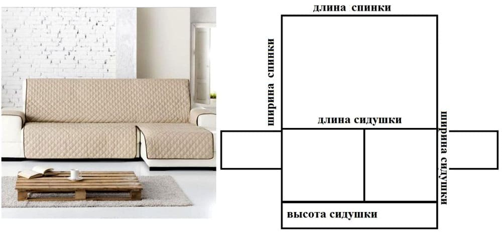 Еврочехол подходит для нестандартной формы спинки углового дивана