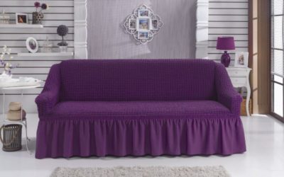 Ещё один интересный вариант чехлов – с «юбочкой», оная представляет собой свободное полотно, которое начинается от подлокотников. Такая модель выглядит нарядно и становится настоящим украшением интерьера.