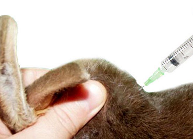 - в возрасте 45 дней и при достижении кроликом веса в 500 г делается первая прививка сразу от двух болезней, если же ассоциированной вакцины нет, сначала делают прививку от миксоматоза, а спустя 10 дней – от геморрагической вирусной болезни;