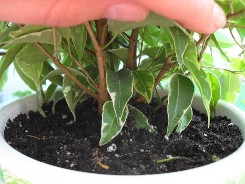 Важно! Не менее опасным для фикуса является переизбыток минеральных веществ — приводит к вытягиванию стебля, образованию белого налёта на поверхности грунта.